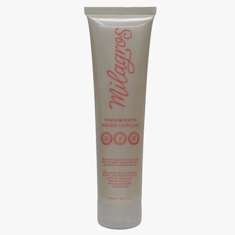 Tratamiento magia capilar con acido hialunorico para aportar brillo,suavidad y vitalidad , especialmente a las puntas del cabello, contiene extracto de lino, proteína de arroz, contenido 150 ml